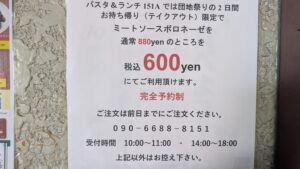 今年の151Aはお持ち帰り(テイクアウト)限定で、